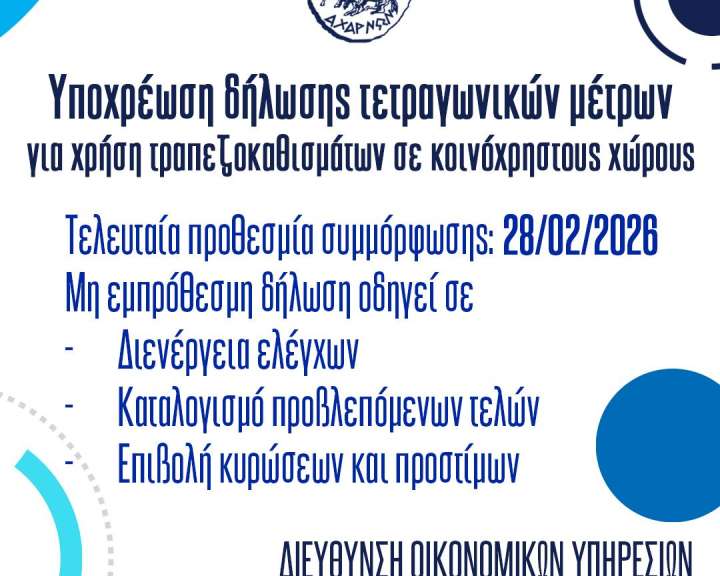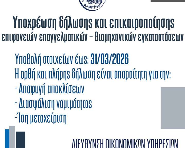 | 03/02/2026 | 3Η ΠΡΟΣΚΛΗΣΗ ΣΥΓΚΛΗΣΗΣ ΔΗΜΟΤΙΚΟΥ ΣΥΜΒΟΥΛΙΟΥ ΔΗΜΟΥ ΑΧΑΡΝΩΝ ΣΕ ΤΑΚΤΙΚΗ ΣΥΝΕΔΡΙΑΣΗ 2026 |
