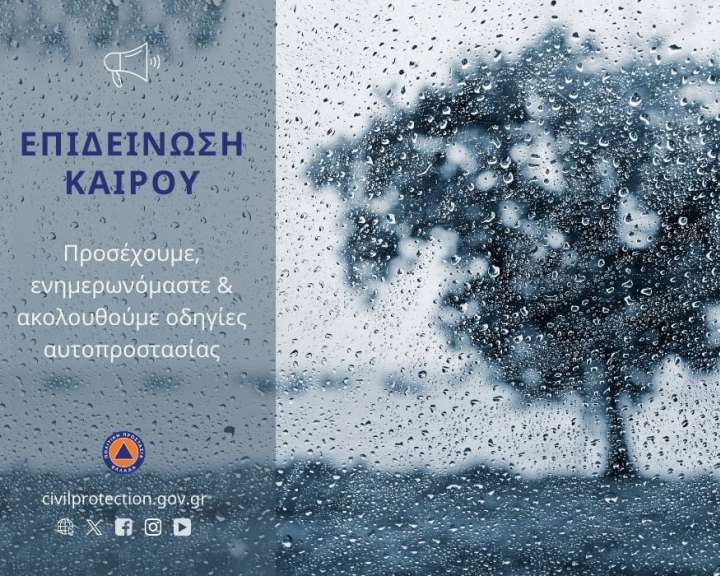Σύμφωνα με το επικαιροποιημένο  Έκτακτο Δελτίο Επιδείνωσης Καιρού (ΕΔΕΚ) που εκδόθηκε σήμερα Δευτέρα 10 Νοεμβρίου 2025 από την Εθνική Μετεωρολογική Υπηρεσία (ΕΜΥ), κατά τόπους ισχυρές βροχές και καταιγίδες προβλέπονται σήμερα Δευτέρα 10-11-2025 ως και αύριο Τρίτη 11-11-2025.  Πιο συγκεκριμένα κατά τόπους ισχυρές βροχές και καταιγίδες προβλέπονται: