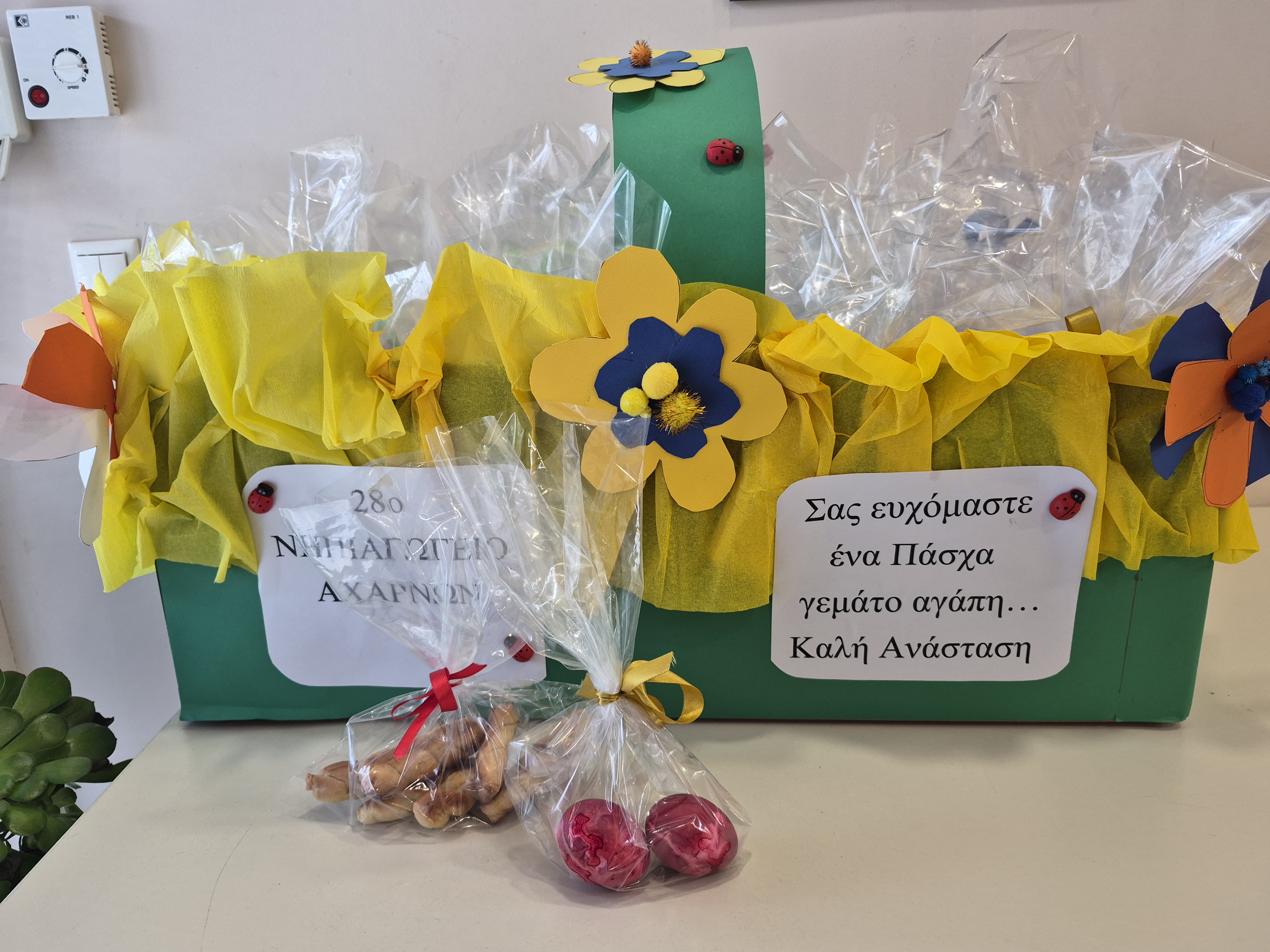 Επιπρόσθετα διανεμήθηκαν στα παιδιά ηλικίας 2-16 ετών λαμπάδες, σοκολατένια αυγά, πασχαλινά τσουρέκια.