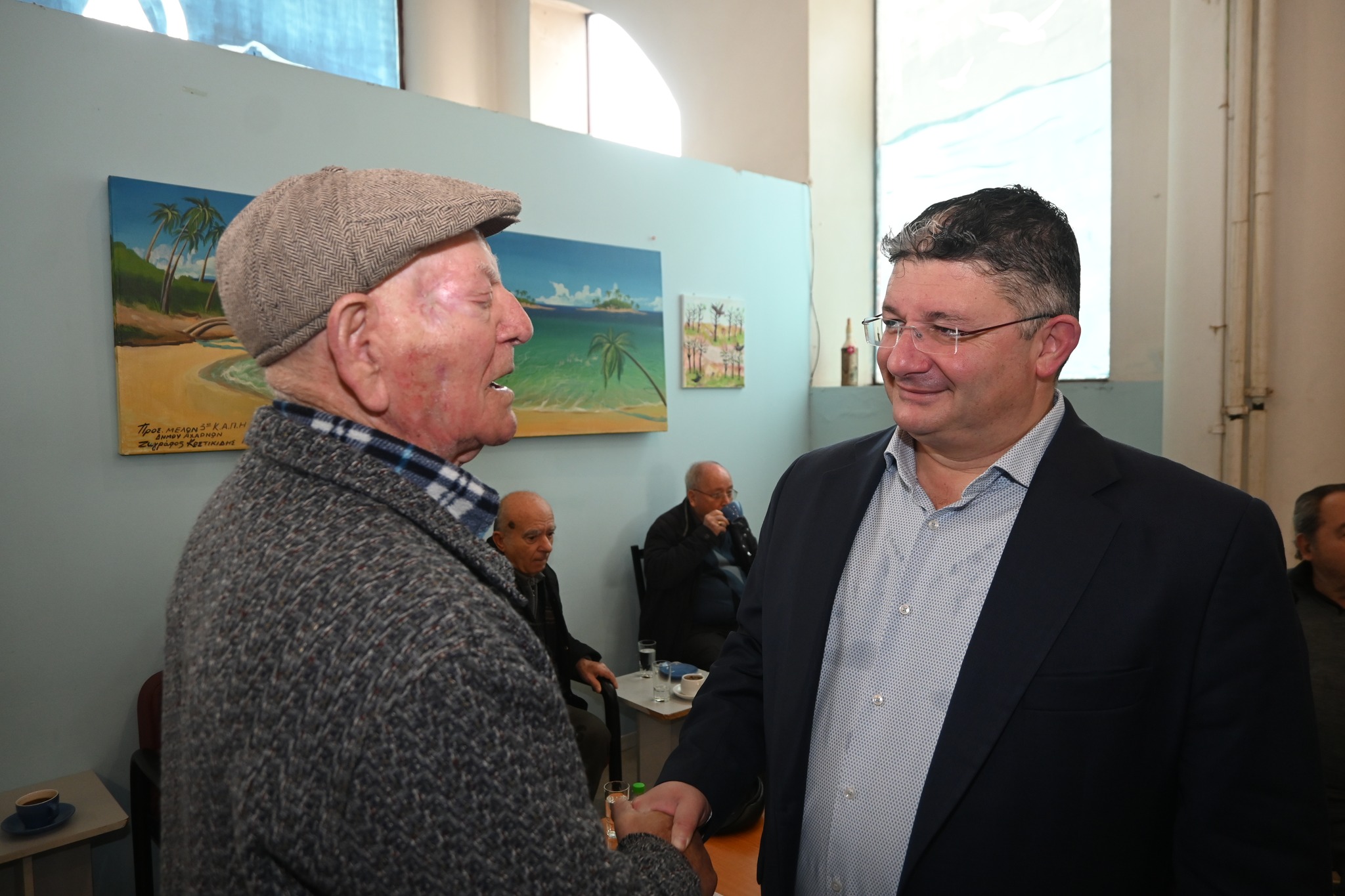 Ενόψει των εορτών πραγματοποιήσαμε επίσκεψη και στο ΚΕΠ του Κόκκινου Μύλου αλλά και στο 1ου ΚΑΠΗ του Δήμου μας στον Προφήτη Ηλία όπου ανταλλάξαμε εγκάρδιες ευχές για το Πάσχα. Αγαπάμε την τρίτη ηλικία, σεβόμαστε και προστατεύουμε τους ανθρώπους που μας μεγάλωσαν, μας αγκάλιασαν και που συνεχίζουν να μας εμπνέουν με τη σοφία τους», δήλωσε ο Δήμαρχος Αχαρνών.