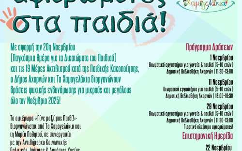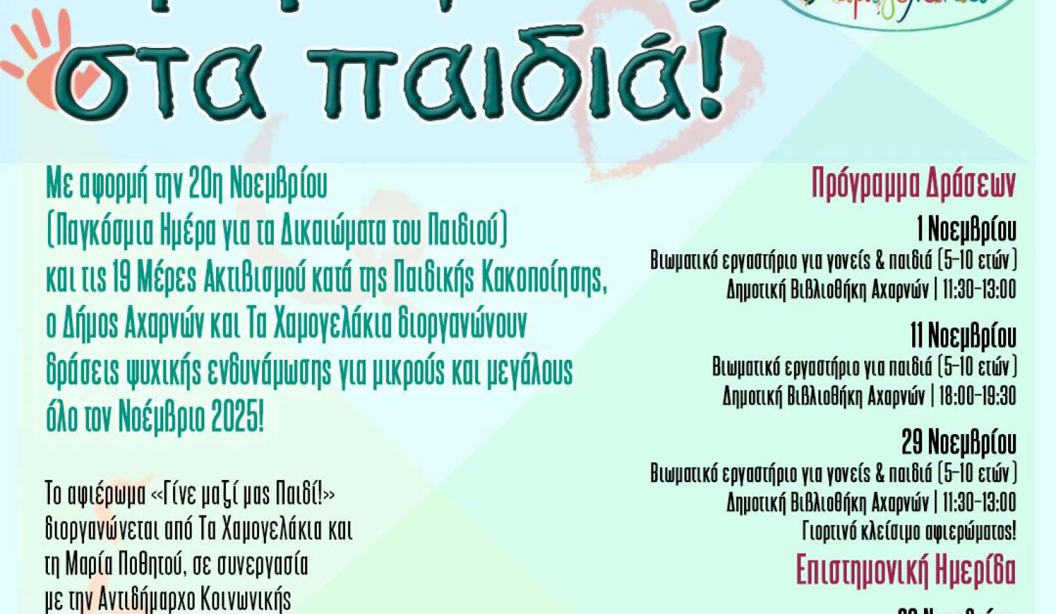 Ένας μήνας αφιερωμένος στα παιδιά από τον Δήμο Αχαρνών και τα Χαμογελάκια
