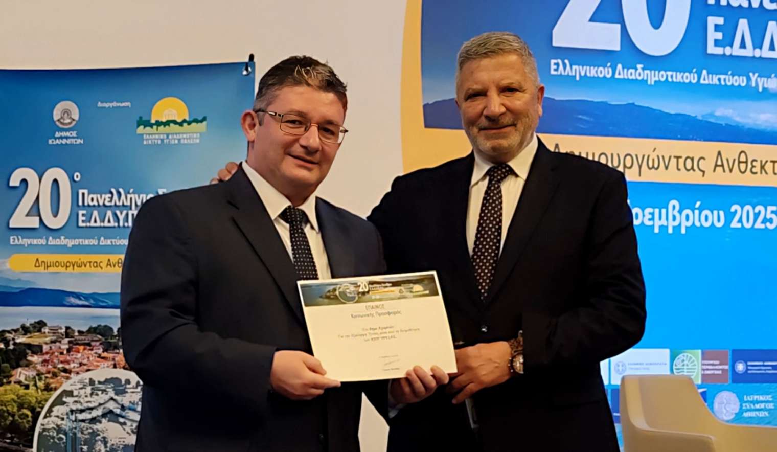 Έπαινο κοινωνικής προσφοράς για το ΚΕΠ Υγείας παρέλαβε ο Δήμαρχος Αχαρνών Σπύρος Βρεττός στο 20ο Συνέδριο της ΕΔΔΥΠΥ