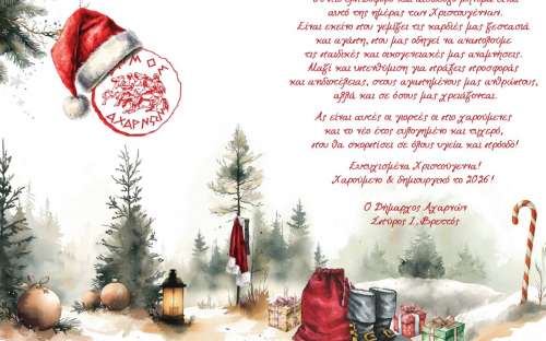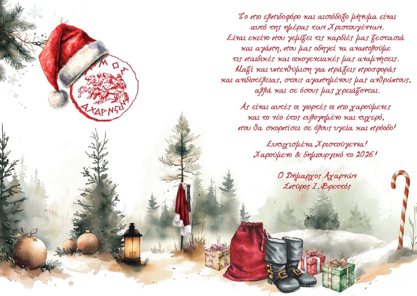 Ευχές Δημάρχου Αχαρνών για Ευτυχισμένα Χριστούγεννα και Χαρούμενο το 2026