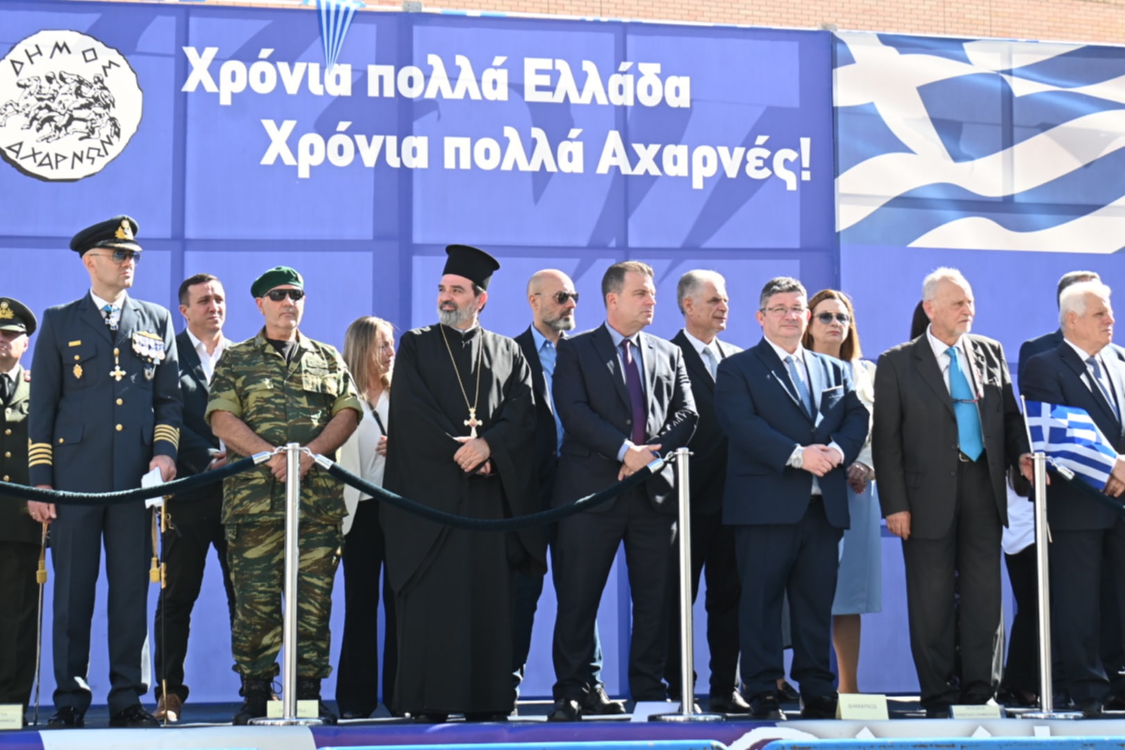 Χρόνια πολλά σε όλες τις Ελληνίδες και τους Έλληνες, χρόνια πολλά στην πατρίδα μας, χρόνια πολλά στον τόπο μας, τις Αχαρνές!».