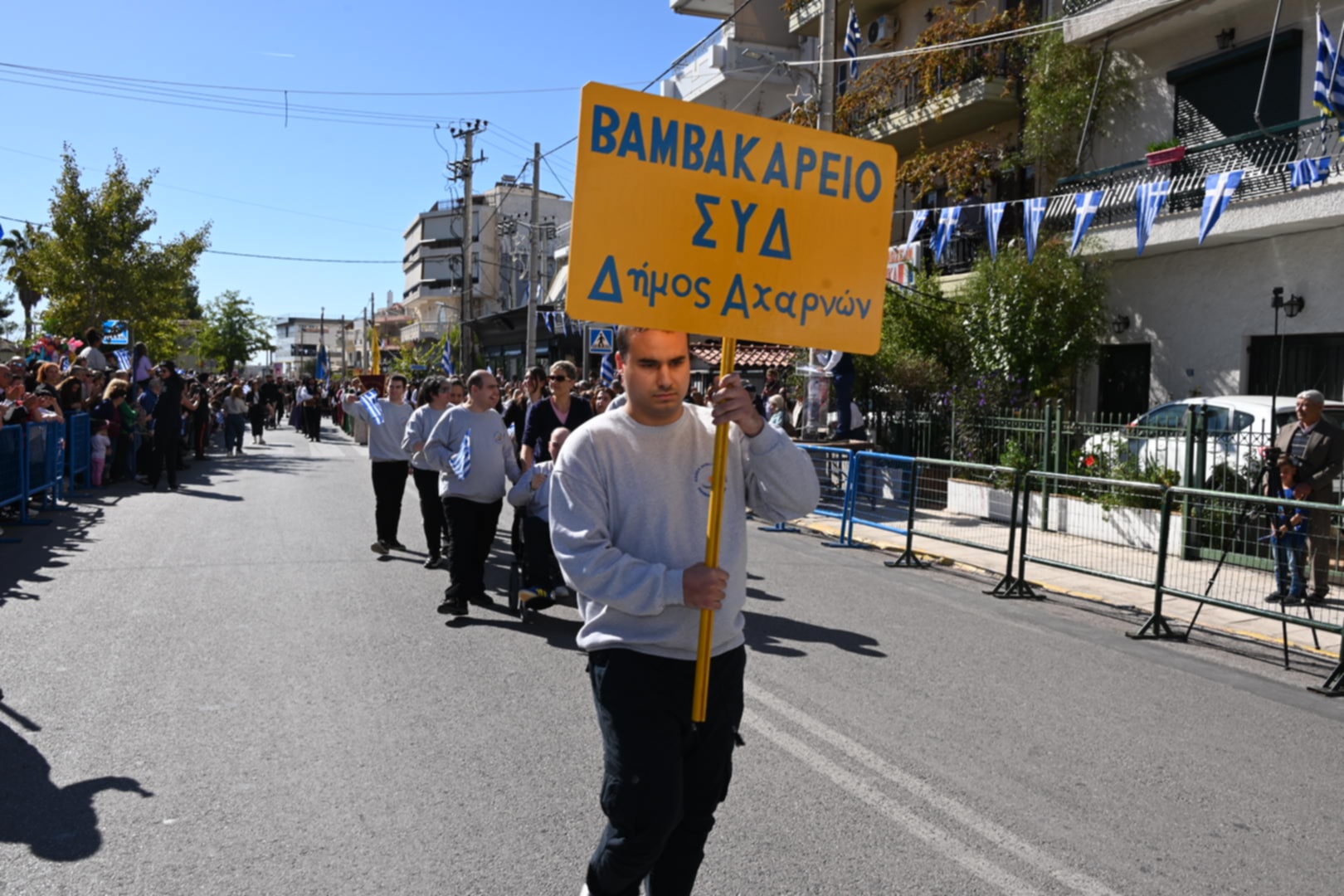 Οι πολιτιστικοί και αθλητικοί σύλλογοί μας, οι μαθητές και οι μαθήτριες των 107 σχολείων της πόλης μας, μάς γέμισαν με περηφάνια διατρανώνοντας, μέσα από την καθιερωμένη παρέλαση, την αγάπη τους και την πίστη τους στην πατρίδα. Αυτά τα παιδιά είναι το μέλλον των Αχαρνών, το μέλλον της Ελλάδας, και δε σταματάμε να αγωνιζόμαστε με όλες μας τις δυνάμεις για την πρόοδό τους.