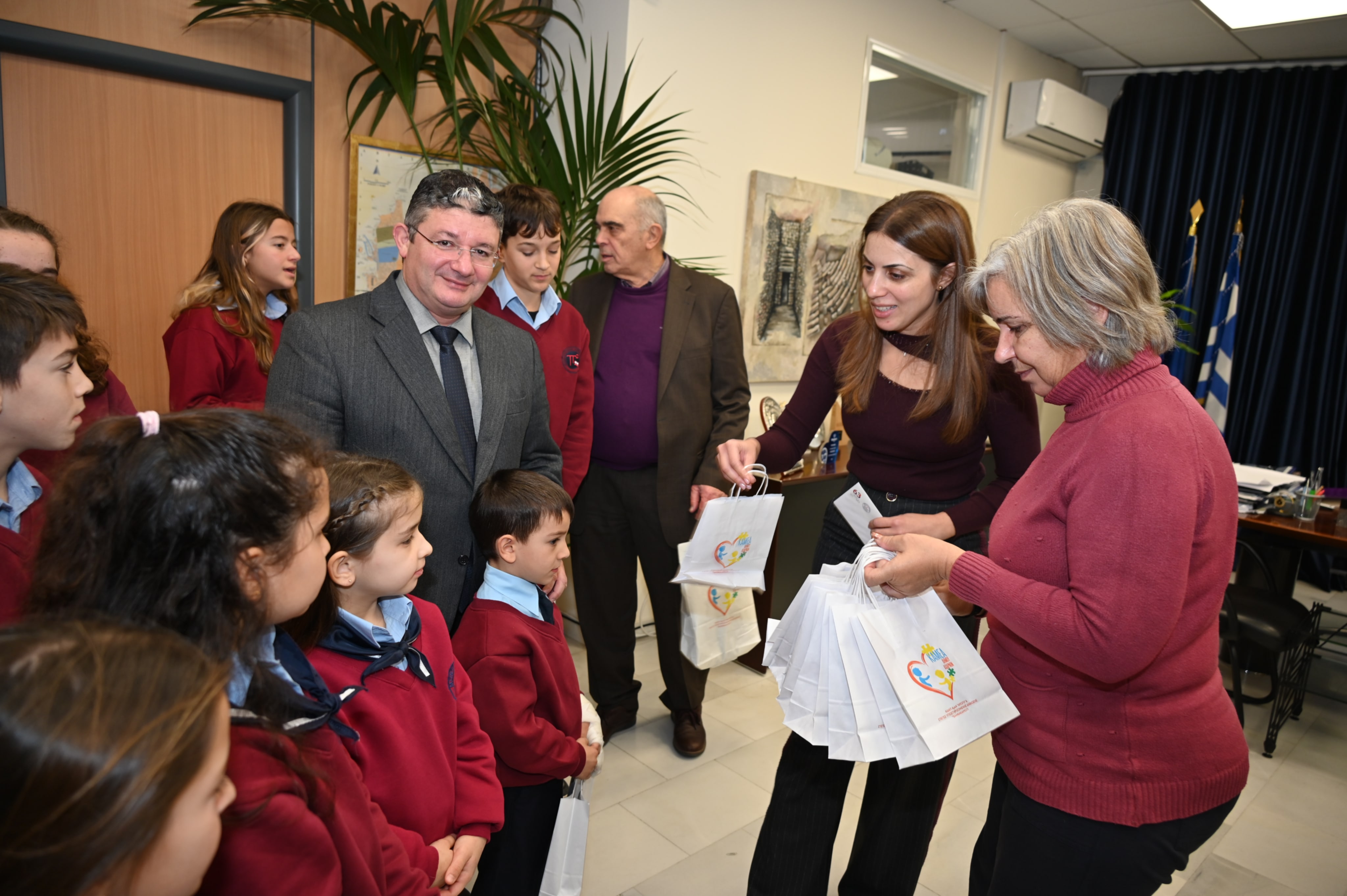 Ο Δήμαρχος Σπύρος Βρεττός υποδέχτηκε την αντιπροσωπεία στο γραφείο του και αφού ευχαρίστησε τα παιδιά αναφέρθηκε στη μεγάλη σημασία της κίνησής του. Αμέσως μετά τόνισε σχετικά: «Η αγνότητα της παιδικής ψυχής και η ανιδιοτέλειά της δεν παύει να μας εκπλήσσει και να αποτελεί ένα φωτεινό παράδειγμα αλληλεγγύης για όλους. Για ακόμα μια χρονιά οι μαθητές των Μοντεσσοριανών Σχολείων συγκέντρωσαν χρήματα από το bazaar τους και αποφάσισαν να προσφέρουν επιταγές συνολικού ύψους 2.500 ευρώ που θα δοθούν σε ευπαθείς οικονομικά οικογένειες με παιδιά, μέσω της Κοινωνικής Υπηρεσίας του Δήμου μας. Παράλληλα οι μαθητές των Μοντεσσοριανών δώρισαν επιταγές 500 ευρώ αλλά και 34 λίτρα ελαιόλαδο για τους ωφελούμενους του ΚΑΜΕΑ «Αρωγή».