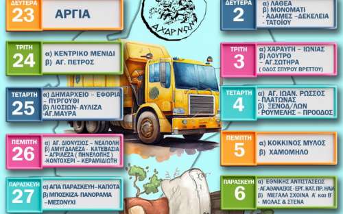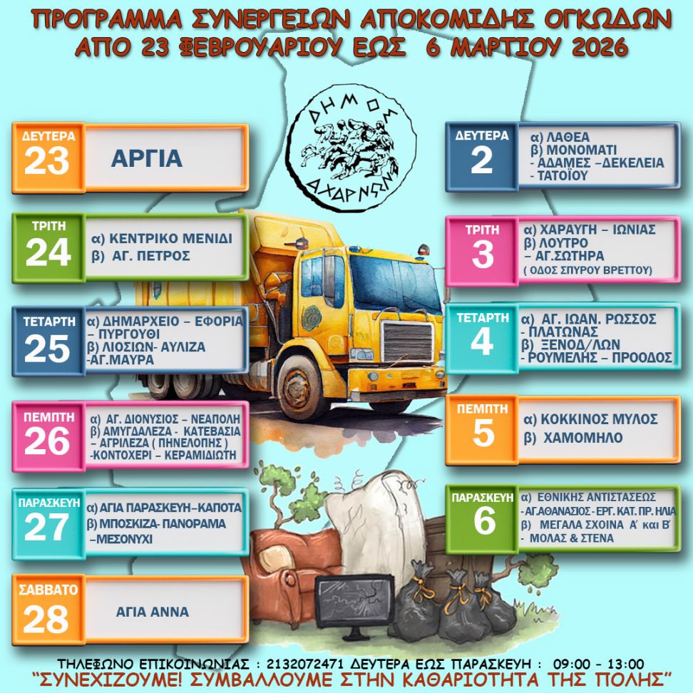 Το πρόγραμμα συλλογής ογκωδών για το διάστημα 24/2-6/3