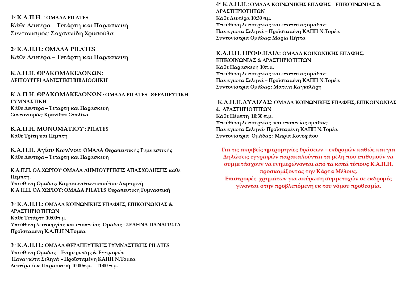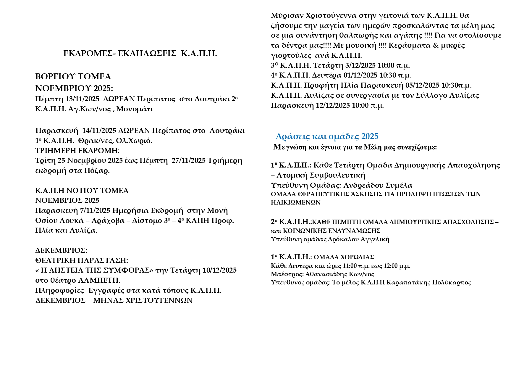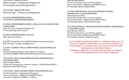 Το πρόγραμμα των ΚΑΠΗ του Δήμου Αχαρνών για τους μήνες Νοέμβριο και Δεκέμβριο