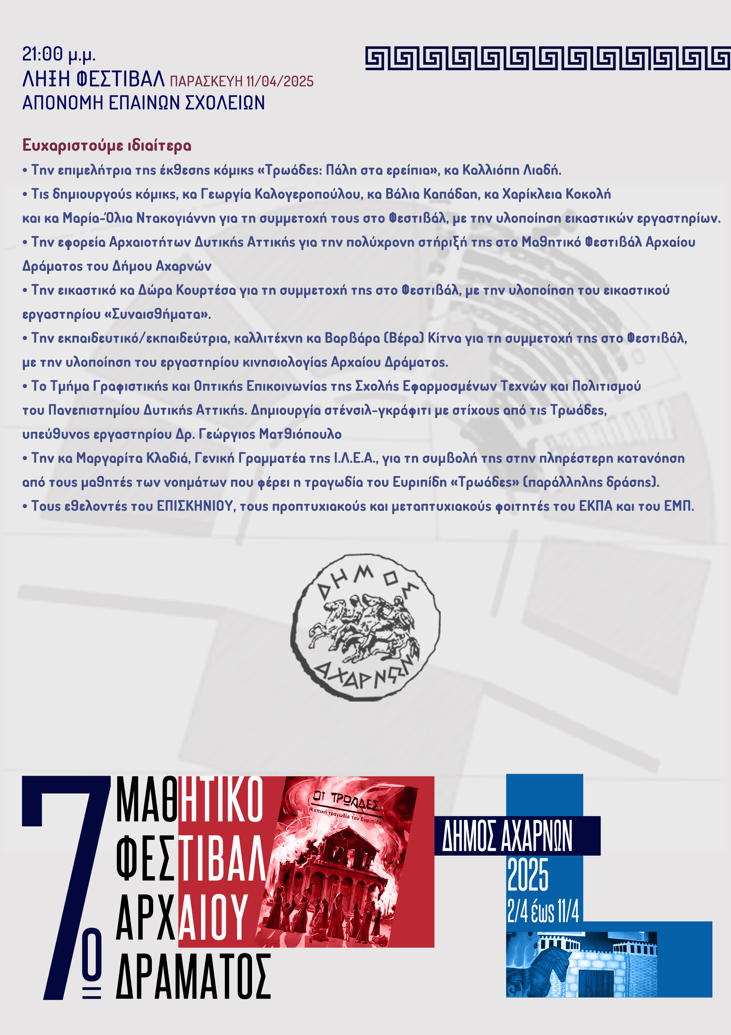 Το πρόγραμμα του 7ου Μαθητικού φεστιβάλ Αρχαίου Δράματος-Αχαρνές 2025