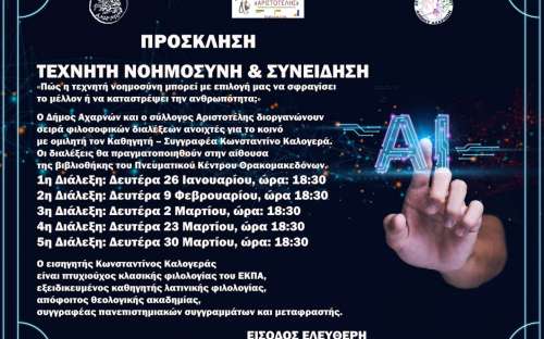Σειρά φιλοσοφικών διαλέξεων από τον Δήμο Αχαρνών και τον Σύλλογο Αριστοτέλη