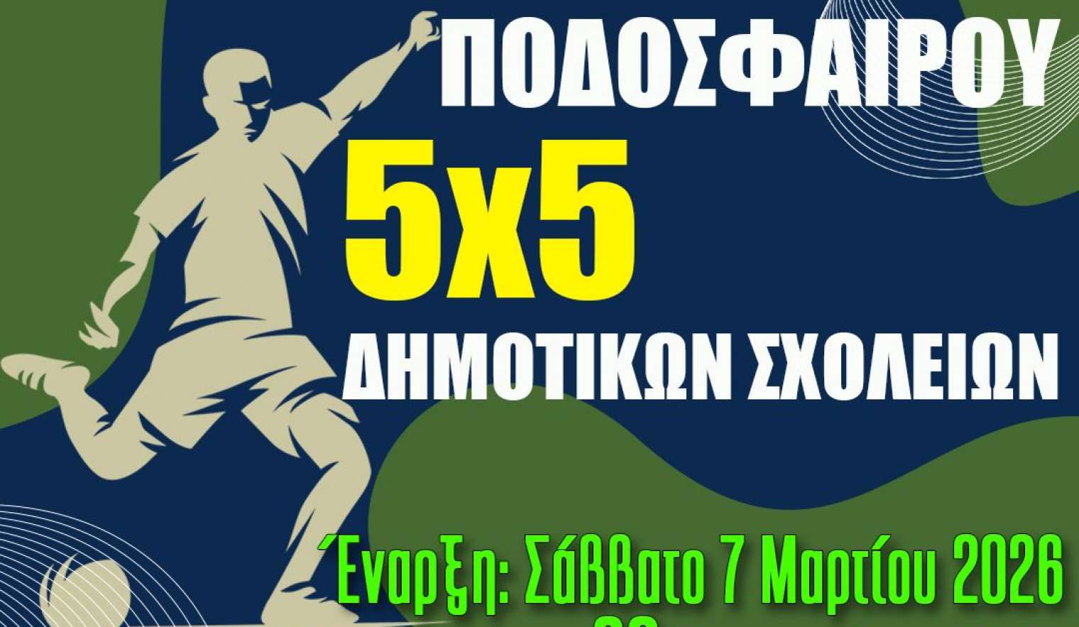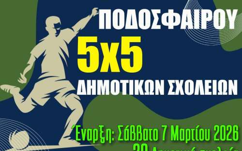 Ο Δήμος Αχαρνών και η Διεύθυνση Πολιτισμού & Αθλητισμού, όπως κάθε χρόνο έτσι και φέτος, διοργανώνει το 18ο Τουρνουά Ποδοσφαίρου 5x5 Δημοτικών Σχολείων, ενισχύοντας το αθλητικό πνεύμα και την ευγενή άμιλλα μεταξύ των μαθητών.