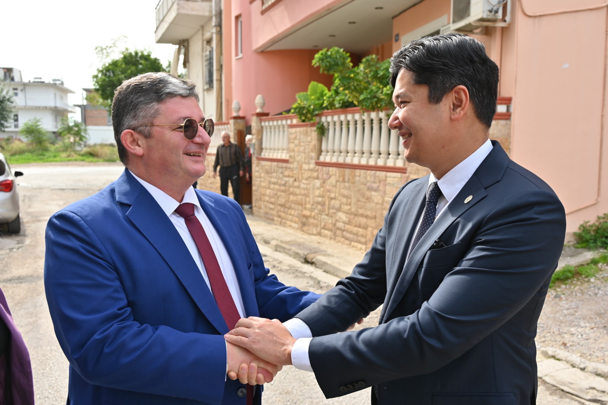 Ακολούθησε ξενάγηση στο μνημείο της πλατείας Δημαρχείου, αφιερωμένο στη φιλία των δύο λαών, ενώ επιβεβαιώθηκε η πρόθεση των δύο πλευρών να ενισχύσουν τις ήδη στενές σχέσεις που συνδέουν τον Δήμο Αχαρνών με την πόλη Τσιμκέντ, με την οποία ο Δήμος είναι αδελφοποιημένος.