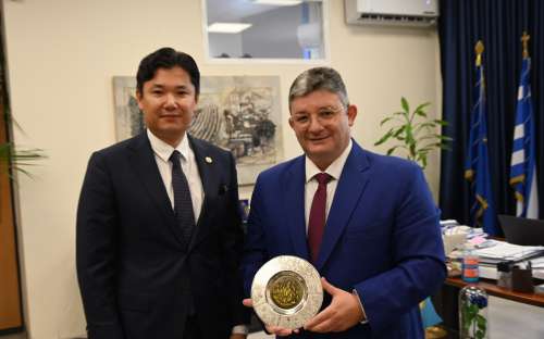 Στο Δημαρχείο Αχαρνών ο Πρέσβης του Καζακστάν Sultangozhin Timur - Συνάντηση με τον Δήμαρχο Αχαρνών Σπύρο Βρεττό