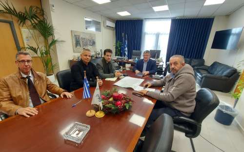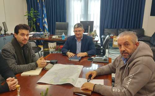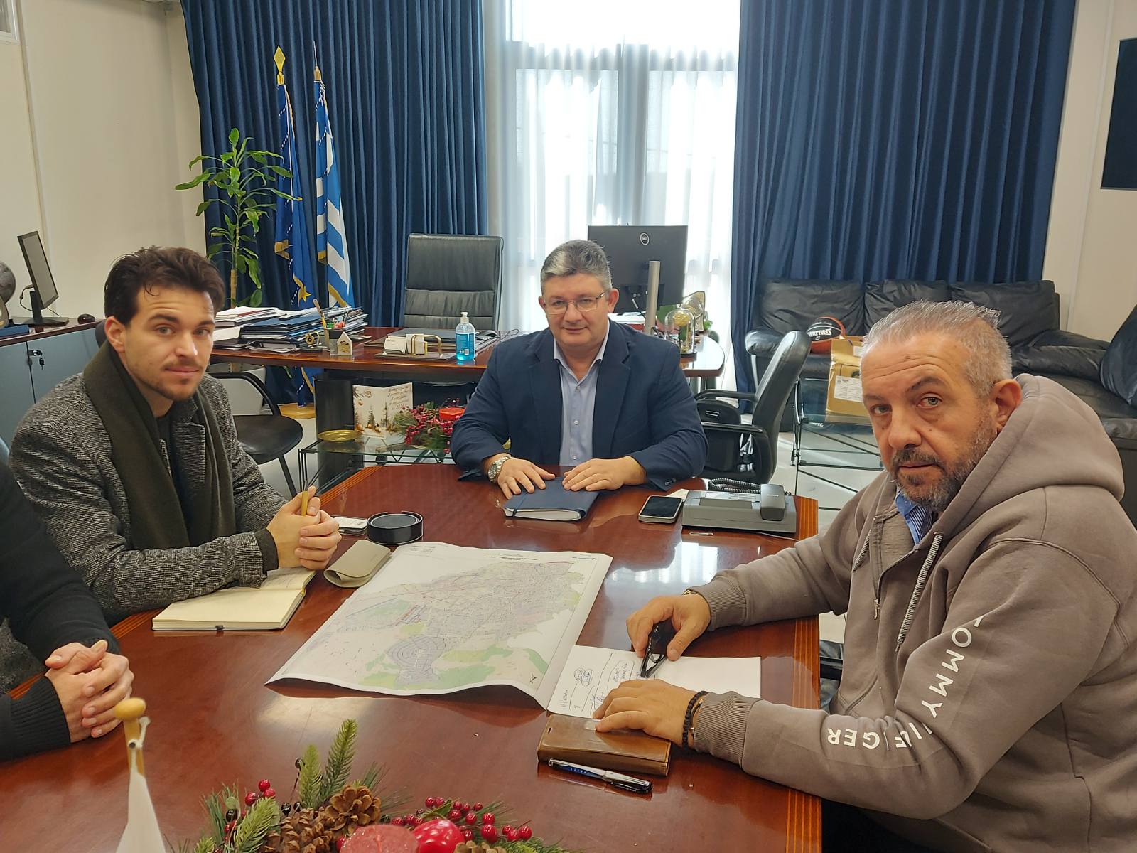 O Δήμαρχος υποδέχτηκε τους εκπροσώπους της εταιρείας στο γραφείο του, παρόντος και του αρμόδιου Αντιδημάρχου Τεχνικών Υπηρεσιών Γιάννη Νίκα.