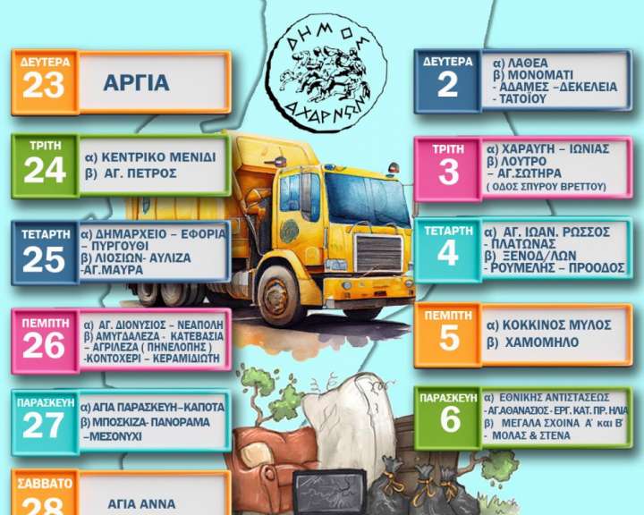 Το πρόγραμμα συλλογής ογκωδών για το διάστημα 24/2-6/3